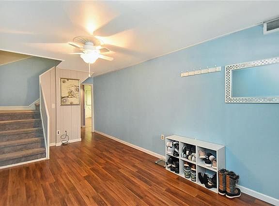 Welcome to this PERFECT end-unit starter home with spacious fenced in yard and plentiful parking. Recent upgrades include NEW ROOF (2019), NEW CARPET on 2nd floor, updated bathroom, and laminate flooring throughout 1st floor. Covered patio overlooks large back yard which is flat and nicely maintained with privacy fence. Laundry room on 1st floor. Home has been freshly painted throughout! Don't miss out on this amazing low-maintenance home which you might be able to own for less than rent!