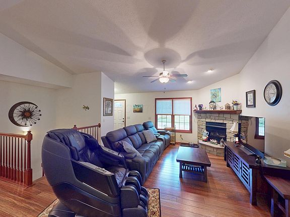 Lovely ranch home located on Terrace View Drive in Apple Valley, features include 3 bedrooms and 2 full baths, vaulted ceiling living room with pretty stone and gas fireplace, adjoining dining area with access to the rear deck and fenced in back yard, beautiful cabinet filled kitchen with stainless steel appliances and island/breakfast bar, primary bedroom suite with its own private bath, full basement with ample storage space, attached 2 car garage, natural gas heat and central air, priced right at $310,000.