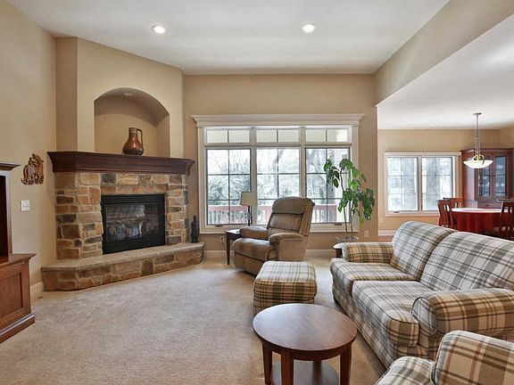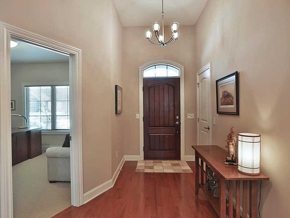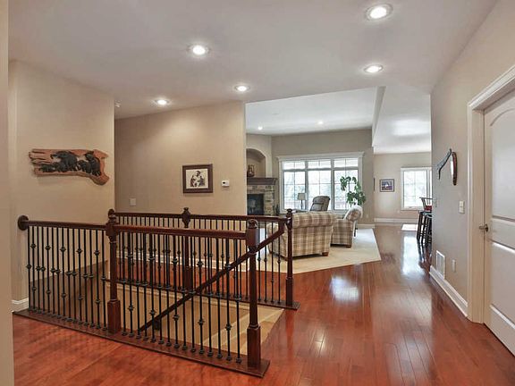 Custom built patio home tucked away in a private yet convenient area. Special features include gleaming hardwood flooring in the entry, an open & airy great room w/wall of windows & impressive stone gas log fireplace w/raised hearth and a beautiful kitchen w/granite counters, 42'' cabinets, center island w/raised eating bar, hardwood flr, SS appliances and a spacious eating/dining area w/door to a covered porch. The 1st floor also boasts an exquisite master suite w/tray ceiling and outstanding bath w/2 walk-in closets, tile flr & a grand walk-in shower w/stunning tilework and double showerheads, a 1st floor den or 3rd bdrm, a luxurious 1/2 bath with expansive tile & 1st laundry rm w/tile floor. The LL offers a large rec room w/deep storage closet and plenty of unfinished storage. Amazing!!