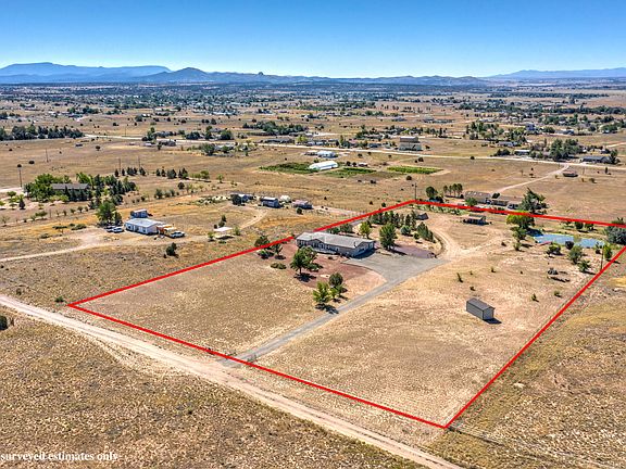 Fantastic & Large Home on 5 Beautiful Acres! This All-Electric Home Boasts a Functional Split Floor Plan w/3+BR, 2 Full Bathrooms, Tech/Office Area & Large Family Room w/WBFP and Surround Sound! Home is Super Clean w/Laminate & Vinyl Flooring Throughout! Abundant Storage w/Built-In Tech Center Desk & Dining Room Cabinetry! Wonderful Full-Length Enclosed Back Patio to Entertain & Enjoy the Panoramic Views! Home has been recently painted and releveled. Fully Fenced w/Walk-thru & Drive-thru Gates! 4 Out Buildings w/Power, 5 Water Spigots, Fishing Pond w/Aerator & 30-Fruit Tree Orchard! Ceiling Fans throughout & Great-Producing Water Well w/3 New Pressure Tanks! New Landscape Rock w/RV Hookups & 1200-gal. Septic Tank! Paved Roads all the way, only Last Half-mile Dirt. Fantastic Granite,