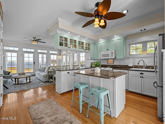Welcome to 865 Winchester Way! Situated along Ball Creek, this beautifully designed 2-bedroom, 2.5-bath home is a rare waterfront gem, offering privacy, comfort, and charm. Stepping in, you will find that the windows in the living area surround the room and bring in ample light. A cozy fireplace and built-in bookshelves add character, making this space ideal for both relaxing and entertaining. The screened-in patio just off the main floor invites you to enjoy peaceful mornings or cool evening breezes while taking in the water views. The kitchen features plenty of cabinet space, a beautiful kitchen island, and a breakfast bar - providing extra seating for guests. With an open layout, the kitchen flows right into the living room. Upstairs, you'll find a laundry closet and two generously sized bedrooms. The expansive primary suite offers a private balcony, built-in bookshelves, and a sunlit nook—perfect for a desk or reading chair. The en-suite bathroom features a walk-in shower. The second bedroom is equally spacious with a well-appointed private bath, making it perfect for guests or family. In your backyard oasis, a private dock awaits—perfect for launching a kayak or casting a fishing line. The yard also features a cozy firepit area, a grill station for outdoor cooking, and ample space for dining or relaxing under the open sky. Whether you're searching for a place to call home or a peaceful weekend escape, this property offers the best of waterfront living in a truly one-of-a-kind setting.