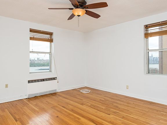 Amazing view of NYC from this unit at Woodcliff Gardens. This is a pet friendly building. This unit gets tons of sunlight and faces East with unobstructed NYC Skyline. Woodcliff Gardens is a way of life and you have the James Braddock Park right across the street. This is a commuter's dream with the bus stop right in front of the building NJ Transit or NY Waterway Ferry buses. Amenities are: exercise room, storage, pool with jacuzzi and laundry room in basement. Board approval is required and need a 3:1 Ratio.