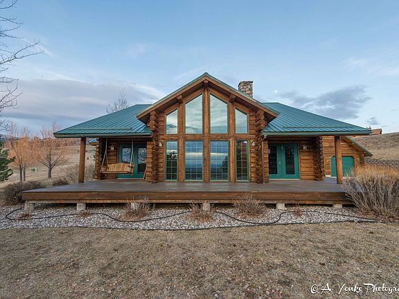 Quintessential Montana log home on over an acre! This gorgeous home boasts hardwood floors, floor-to-ceiling windows taking in the beautiful view, floor-to-ceiling wood burning rock fireplace, lovely kitchen & soaring ceilings with amazing log beams & detailing! The main floor master suite has an exquisite new bathroom, featuring a large soaking tub & walk-in shower. In-floor radiant heat on the main level. Both upstairs bedrooms have french doors & balconies! Deep crawl space gives basement possibilities!