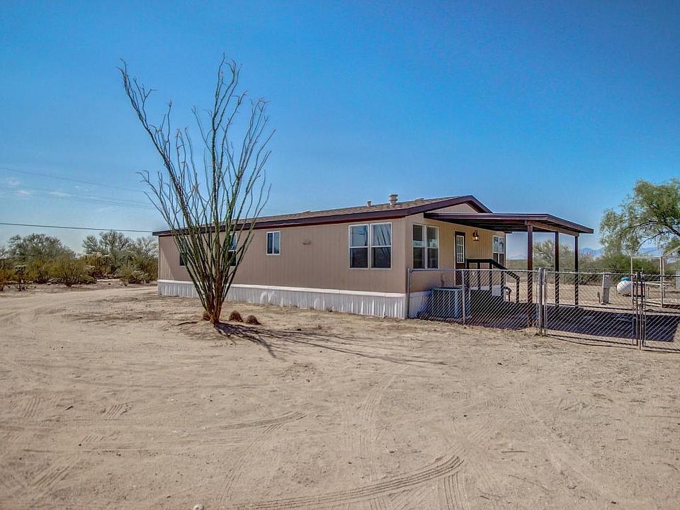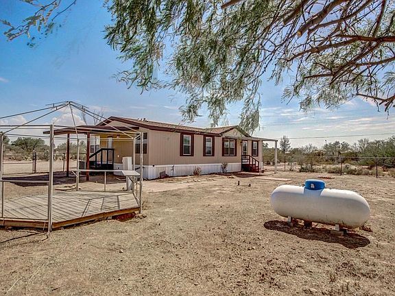 Charming 3 bed 2 bath manufactured home on 1 Acre corner lot. All new vinyl flooring in kitchen, laundry room & bathrooms. New carpet and pad installed in all bedrooms and living area. Large open kitchen features nice cabinets offering plenty of storage & space for food prep. Appliances include gas range, hood vent and dishwasher. Master bath has garden tub and separate walk in shower. Cabinets in laundry room for extra storage. All new 2 tone interior and exterior paint. Brand new roof!! Large fenced in front yard ready to make it your very own oasis in the desert. Large lot with plenty of room for an RV or other toys. All this and it's not a short sale or REO, Agent/Owner.