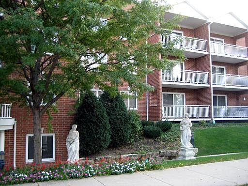 Beautiful condo bldg, like new. 1 BR unit. Just carpeted. Eat in kitchen w/many cabinets includes like new appls-refrig. oven, dishwasher, microwave. In unit washer/dryer. Large LR & adj dining area. Htd garage space next to generous sized storage closet. Balcony. Low assessments include heat, ext & int maintenance of bldg. Quiet location yet close to restaurants, shopping & transportation.