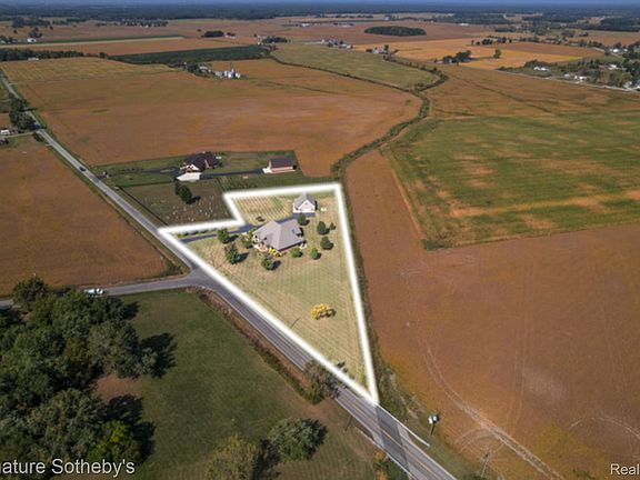Discover a harmonious combination of luxury, accessibility, and serenity in this custom-designed estate. Situated on an expansive 3.7-acre country lot, it is meticulously crafted for comfort and convenience, providing a sanctuary for those in search of both elegance and accessibility. Encompassing over 6000 square feet, this boundary-free residence features spacious rooms and lofty ceilings, highlighting exceptional craftsmanship and architectural intricacies. Generous windows illuminate the home with natural light, enhancing the open and airy atmosphere. The ample rooms offer versatility for various living and entertaining purposes. Enjoy the practicality of two generously sized primary suites, each equipped with private sitting areas, walk-in closets with abundant storage, and attached custom primary bathrooms featuring heated tile floors. Additionally, there are two large bedrooms on the upper level, each with its own bathroom. The second floor also includes a Flex Room and a balcony area, providing extra living spaces. At the heart of the home lies the chef's kitchen, outfitted with high-end appliances, custom cabinetry, a large island, a second island with a steamer, and a walk-in pantry, making it ideal for culinary enthusiasts and social gatherings. Designed for effortless movement, the home boasts wide hallways, doorways, and convenient entry and exit points throughout. The accessible bathroom features a roll-in shower, tiled surfaces, and accessibility fixtures for optimal comfort and safety. Step outside to a picturesque environment with mature landscaping, creating a tranquil backdrop for relaxation and outdoor pursuits. The oversized lot offers ample private outdoor space on the stamped concrete covered patio at both the front and rear of the property. Enhancing the estate is a versatile outbuilding or barn, complete with a workshop area and a bonus room above.