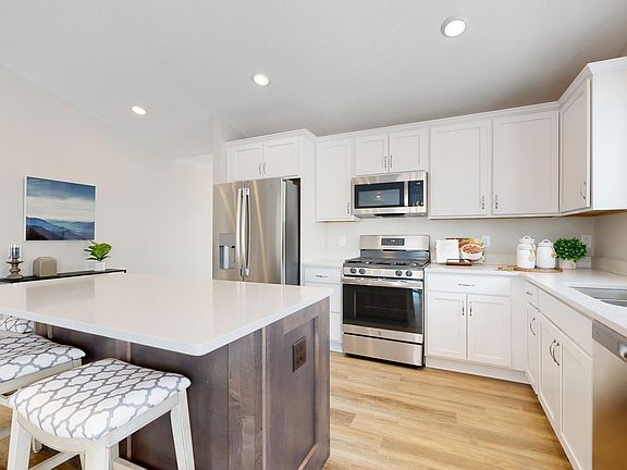 JP Brooks presents the McKinley 3 Level Split floor plan on a walkout lot with an upgraded elevation. Desirable Edmonson Ridge community located in the heart of Monticello. Upgraded white cabinets, SS appliances, vinyl plank flooring and on-sight finished trim. Open/vaulted kitchen, dining and living room concept. Main level features an office and you'll find 3 bedrooms on the upper level. Living room features a corner gas fireplace. Finished basement features a family room, 4th bedroom and 3/4 bathroom. Pictures, photographs, colors, features, and sizes are for illustration purposes only and may vary from the home that is built. Completed New Construction Home - Quick Move In!