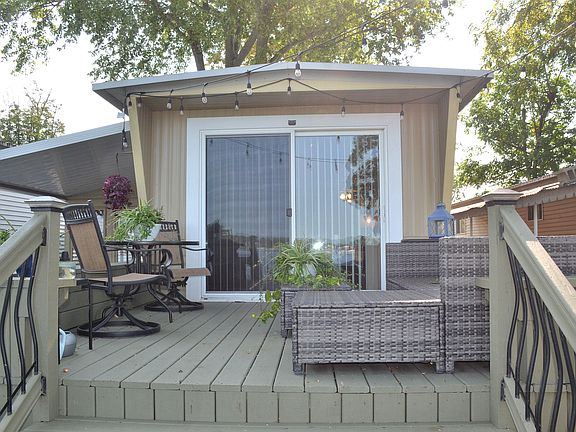 Don't miss out on this 2 bed open water lakefront property in Lakeridge Resort in Huntsville with a dock. This home features a large screened porch, patio and open deck area. This open waterfront living provides a great view of the lake and and an endless supply of sunsets. The home is all newly painted and comes completely furnished, making it ready to move in. . The lot rent of $792.00 per month includes trash, mowing, dock, boat and trailer storage lot, snow removal, tree service. The water is metered and sewer is a fixed rate of $50.50 per month from the county.