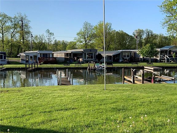 Affordable Lake Living at it's best. This mobile home has everything you need to enjoy the lake, two bedrooms, one bath, kitchen living room combo, an extra wide extension that houses a large family room with a wood burning fireplace, large utility room with tons of storage. The outside features include direct access to the lagoon and lake, dock and lots of green space. The large 10"x14' storage shed is great for storing all of your toys. Lot rent includes water, sewer, trash, lawn mowing, dock, boat storage, sea wall repairs, tree care, and snow removal. This mobile home can be used all year.