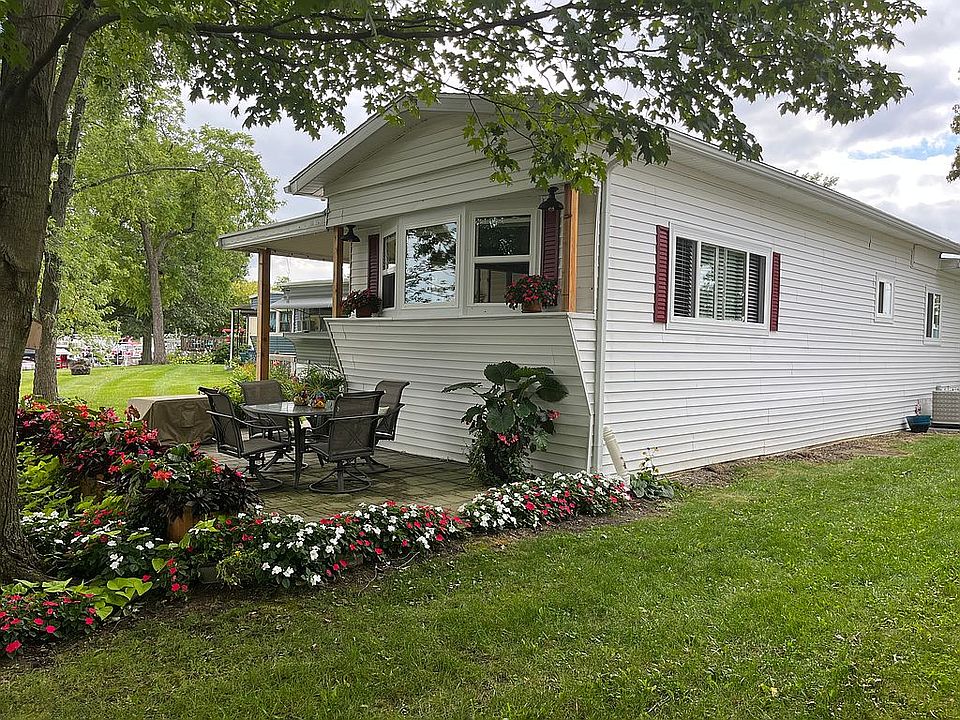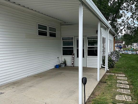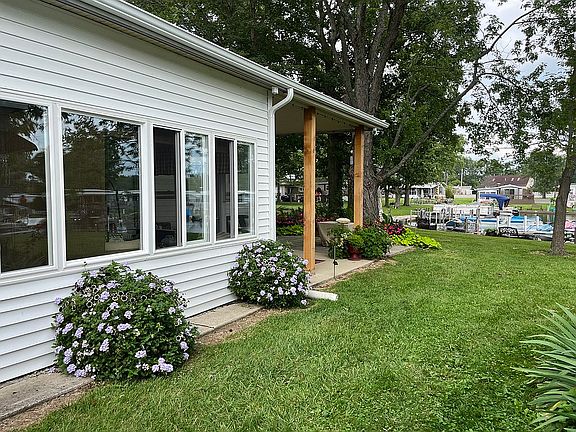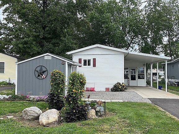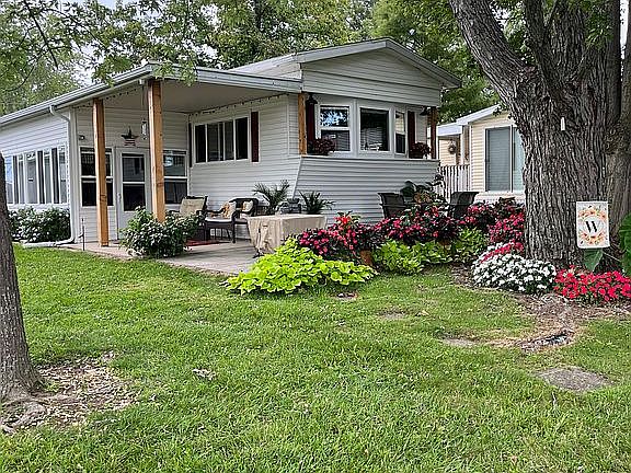 Updates completed in last 18 months: new thermal windows throughout, window coverings, countertops, new lighting, new carpet on entry stairs , new carpet and flooring , CARPORT, washer and dryer, seamless gutters and downspouts, gutter guards done 8/23, entire inside newly painted. The heat tape has been updated and some insulation. This home has a large living and kitchen area, large master suite with a walk-in closet and an updated bathroom with a double sink and walk in shower. Separate utility room has washer and dryer and ample storage space. Half bath conveniently located off hallway. The appliances include range, refrigerator, dishwasher, disposal and microwave. The large Florida room with roll up blinds and ceiling fans makes for additional living space. The mobile is situated on a nice shaded lot with your own double sided boat dock, one side with electric lift. 10 by 10 shed. This mobile is a must see and you will not be disappointed. Move in at closing! Located in Lakeridge estates. Lot rent 850.00 per month includes dock, sea wall maintenance, tree service, trash, snow removal, lawn mowing, boat and trailer storage. New amenities include:paved drive and street, pickleball and basketball court, fire pit along with grill. Sewer fee is 50.00 per month. Lakeridge is a very quiet, safe, friendly and clean resort. Full time or part time you will enjoy this property’ Call or text 937-206-0536 or 937-206-3131.