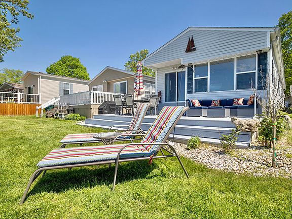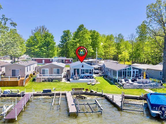 With this great view how can you go wrong? If you are looking for a summer get away with a spectacular view of the lake please look no further. The open concept kitchen, dining and living room have a wide open view of Indian Lake. Three bedrooms gives you room for plenty of guests. The sliding glass doors off of the living room leads you to a large deck and your two-side dock with two electric lifts one for a V-bottom boat and one for a pontoon boat. There is also a jet ski lift. The property also has a large storage barn that is large enough to store a golf cart. This property is sold fully furnished. The lot rent of $792.50 per month at Lakeridge includes trash, lawn mowing, dock, boat and trailer storage lot, sea wall repairs, tree trimming and snow removal. Lakeridge is also in the middle of paving all of the drive ways and roads within the resort.