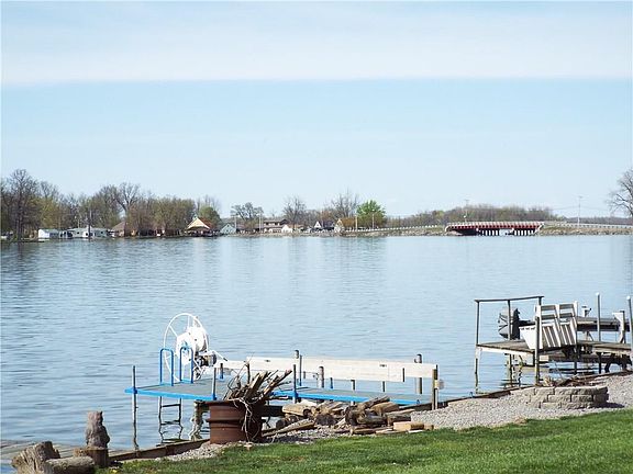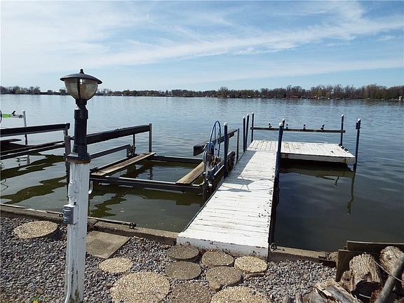 Very spacious fully furnished lakefront mobile at Lakeridge Resort. Special waterfront views and 2 boat docks with a shore station lift.The floor plan is very open and light. Dining area has wide open water views, Large master bedroom with a large adjoining bath that has both a garden tub and a walk in shower. Wow open kitchen, breakfast area,and breakfast bar that has dynamic lake views. Kitchen has dishwasher, gas range, double door refrigerator. Open living room plus a Lake room/rec. room with water views. Amish built over-roof. Two storage buildings with electric service. Large lakeside deck for dining and entertaining. Furnished totally, just bring food and clothes. Located in no-wake zone for relaxing, fishing, and boat fun. Glorious sunsets. Sunsetter awning and trees provide shade for afternoon. This could be year round living. Lot rent $618 monthly. Lakeridge Resort provides seawall and yard maintenance, trash, softened water provided,sewer, snow removal, boat trailer parking.