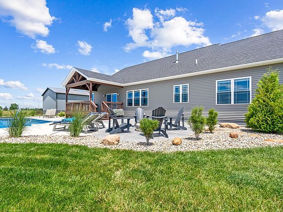 Welcome to your expansive retreat on 2 acres of partially fenced and serene landscape, where luxury meets tranquility. This stunning new home boasts over 3700 square feet of meticulously crafted living space, designed for comfort and style. As you step inside, you're greeted by soaring vaulted ceilings that create an airy and inviting atmosphere throughout. The focal point of the spacious living area is a charming stone surround gas fireplace, perfect for cozy evenings with family and friends, and the gourmet kitchen, featuring modern appliances, sleek granite countertops, gorgeous breakfast island, and a walk in pantry. The dining area offers panoramic views of the sprawling land and the open floor plan, ideal for entertaining guests or enjoying a quiet meal. The master suite is a luxurious sanctuary, complete with tray ceiling, a beautiful tiled shower, double sink granite top vanity, and generous walk in closet space, ensuring a private oasis to unwind after a long day. Another spacious bedroom and full bathroom completes the main level. Downstairs, the finished basement provides additional living space with a recreation room, a daylight bedroom, a media storage room plus personal storage space, and a flex room, ideal for a 4th bedroom, home gym or private office. Outside, the expansive grounds have been hardscaped and landscaped and include an impressive heated in-ground pool with automatic cover, built in fire pit, and new covered deck, perfect for summer relaxation and outdoor gatherings. Just off the main level laundry/mud room, for the hobbyist or car enthusiast, enjoy a 3 car attached garage plus a 30'x40' pole building with 14 foot overhead doors offers ample space for vehicles, RV's, equipment, or workshop activities. Conveniently located and just a short drive to North Manchester, Wabash, Warsaw, and Huntington, this home combines amazing amenities with accessibility. Don't miss the opportunity to make this luxurious property your own. Discover the unparalleled comfort and elegance that awaits you in this remarkable home.