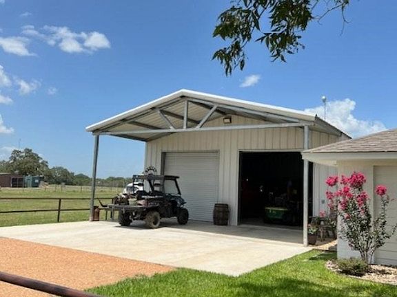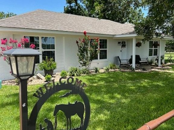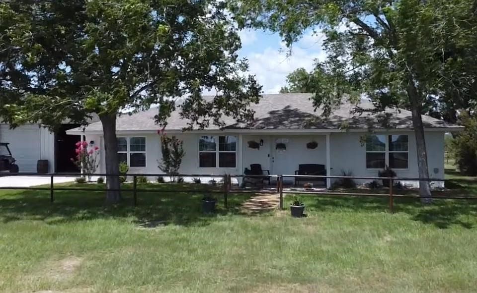 Highly sought after Location will bring you to this 10.01 acre home which has been Thoughtfully updated in 2021- 3 bedroom, 2 bath home with New interior walls and insulation, New windows in 2021, New electrical panels, New all electric central A/C unit and New Roof in 2020. New Hot Water Heater 6 months ago. New water well pump and pressure tank and gauges in 2023, New Culligan Water Softening System installed in 2023. All the new upgrades keep the home cool and the electricity bill cost low. This home has adequate close space including 2 walk ins! New 30 x 40 shop (garage) with 12 Foot overhand in 2023. The exterior of home has been freshly painted (July 2025). New covered back patio with covered walkway to shop built in 2024. Well maintained pipe fencing around house. 3 maintained cross fences and 1 trap perfect for a few horses and your cattle operation. The expansive 60 x 77 barn has 5 horse (or cattle) stalls for that livestock friendly space with enough covered parking inside for a couple of trailers or other equipment. Several Mature Pecan Trees, Mature Pear Trees, and Live Oak Trees that add Beauty to the Property to complete the package. This is a rare opportunity to own land and have an updated Home ready to move in to. Schedule a showing today!