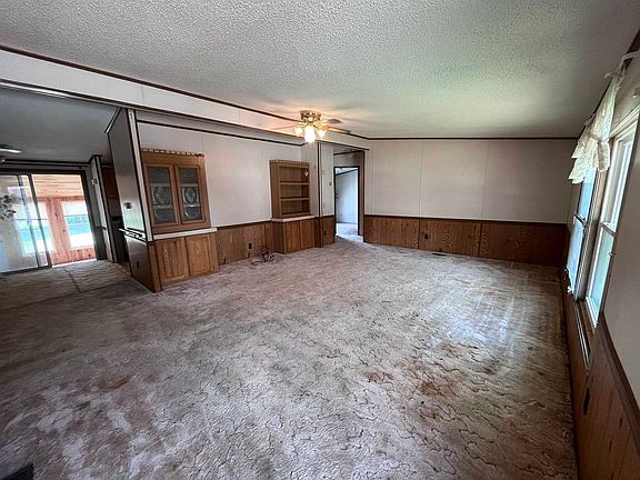 Spacious home with front living room with built in's, formal dining room, large kitchen and amazing sunroom with wood siding and heat/air unit. Master bathroom has access off bedroom and back utility area and has a handicap shower able to roll in with wheelchair. 2 other bedrooms and full bathroom on other side for a split bedroom layout. Detached 2.5 car garage. Needs some TLC and flooring. Priced to sell. Sold As Is.
