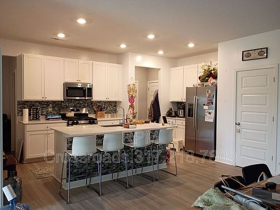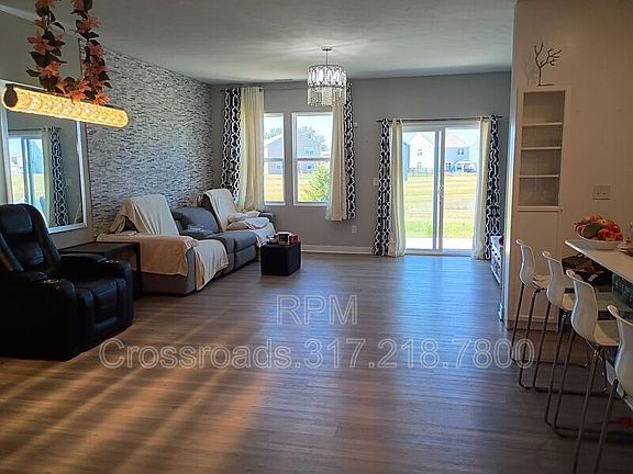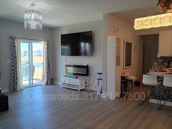Welcome to this stunning 2022-built home in the desirable Springbrook community of Pendleton, Indiana. Thoughtfully designed with modern upgrades, this property offers both comfort and style in every detail. Step inside to a spacious open-concept floor plan with soaring 9-ft ceilings, luxury vinyl flooring, and an Alaska split-face marble accent wall that creates a true focal point. The gourmet kitchen features a quartz island and countertops, turquoise tile backsplash, stainless steel appliances, and two sparkling crystal chandeliers perfect for both everyday living and entertaining. A cozy electric fireplace and centralized AC add comfort year-round. The home includes a 2-car attached garage with wall shelving, additional driveway parking for two vehicles, plus available street parking. Enjoy resort-style amenities right in your neighborhood, including a community pool with pool house, playground, walking trails, and a welcoming neighborhood group chat. One of the most unique features is the serene pond view just outside your doorstep, offering a picturesque setting to relax and unwind. Conveniently located just 2 minutes from I-69 and 10 minutes from Hamilton Town Center, this home combines modern living with easy access to shopping, dining, and entertainment. Limited Time Offer: Sign a new lease by October 15 and receive a $250 gift card at move-in! Don't miss this opportunity to make this your new home. Amenities: 2 car attached garage, water softener, community pool, great location, large open concept, versatile loft, water filtration system, pond access, flo monitor & shutoff, doorbell camera