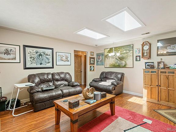 Live in this move-in ready MidCentury ranch, located in SW Lakewood's Cloverdale West neighborhood. The main floor features plenty of natural lighting with newer skylights and an updated bathroom and kitchen. The full-finished basement offers plenty of space for get-togethers with a bedroom and bathroom. Off the main level, the covered patio leads to the private backyard with newer, low-maintenance synthetic turf, and storage shed. Other amenities include an attached two-car garage and solar panels that are not on a lease and owned free and clear. All in close proximity to great Jefferson County public schools, Belmar shopping, dining, and entertaining and easy access to downtown Denver and the mountains. This gem is ready for the picking.
