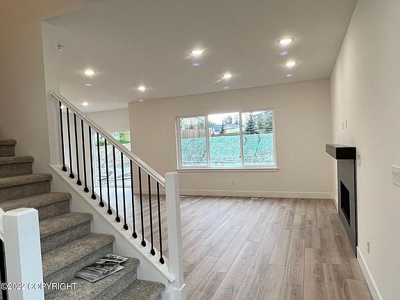 Parade of Homes Model & Ready to Occupy. Single Family Plan. Great Room design with 9' ceiling, linear gas FP, open kitchen w/large island, gas range w/hood, LVP flooring, SS appliances, upgraded cabinets & quartz counter tops throughout. Mud room off garage with Bedrooms & laundry all upstairs. Large master suite overlooking greenbelt with coffer ceiling, private bath & two WIC's *Click More*Tons of natural light with big windows, spacious entry, 5* Energy rated with HE Furnace & on-demand HWH. private yard w/composite deck.Located in NEW Subdivision with lots of greenbelts, double sidewalks and tree lined streets. Close to schools, parks, shopping & minutes from the airport. Walk out the door to Kincaid Park and go skiing on groomed trails or do the Tuesday night runs. -OR- walk through the woods and enjoy the only Sand Dunes in Anchorage. If you are an outdoor enthusiast, this is your home!