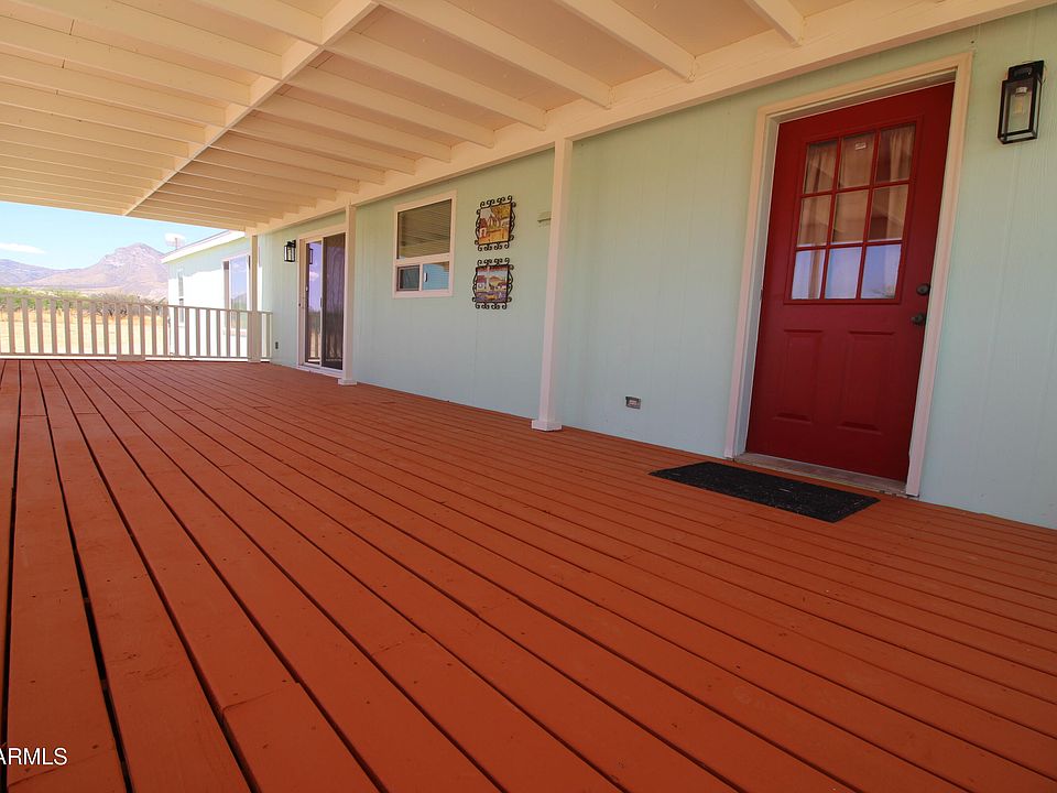 Enjoy over 4 acres of peaceful desert serenity, including 2 fenced acres with gated access for privacy and security. This 4-bed/2-bath home offers a bright and open layout with tons of natural light flowing through the living room and kitchen. Step out onto the covered porch to relax and unwind while enjoying the beautiful mountain views. Additional features include a 2-car carport, multiple storage sheds, and automatic RV gate. 20-panel solar system will be paid off at closing. Other improvements include upgraded windows, a newer roof and a recently updated back porch. Whether you're looking to relax, enjoy outdoor hobbies, or create a comfortable space for your animals, this property offers endless possibilities.