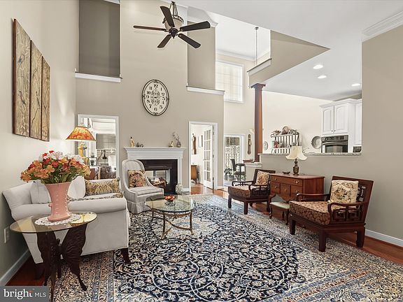 OFFER Deadline: Sunday 3/2 at 3 PM. Stunning brick-front villa offering over 5,000 square feet of meticulously designed living space, featuring soaring ceilings, elegant finishes, and thoughtful upgrades throughout. Nestled in a sought-after 55+ community with top-tier amenities—including a renovated clubhouse, fitness center, party room, outdoor patio, pool, and scenic walking paths—this exceptional home blends sophistication with comfort. Step inside to a grand foyer adorned with rich hardwood flooring and crown molding, setting the stage for the refined details found throughout the home. A private study, complete with built-in bookcases and a double door entry, provides a quiet retreat. The open-concept main level showcases a seamless flow between the living and dining areas, with a two-story ceiling and a striking dual-sided fireplace that also warms the adjacent sunroom. Pendant lighting adds a touch of elegance to the dining area, while custom moldings and cohesive fixtures elevate the space. Designed for both function and style, the gourmet kitchen is a dream, featuring 42-inch cabinetry with undermount lighting and roll-out shelves, granite countertops, a tile backsplash, and sleek appliances, including a double wall oven and gas cooktop. A bright breakfast room with a soaring ceiling and sliding glass doors leads to one of two inviting patios—perfect for morning coffee or al fresco dining. This updated kitchen seamlessly blends contemporary convenience with timeless elegance. The main-level primary suite is a true retreat, boasting a walk-in closet with a custom organization system and a spa-like en-suite bath with a double vanity and a tiled shower with a built-in bench. Upstairs, a spacious loft overlooks the main level, offering a versatile space for lounging. The upper-level bedroom suite is equally impressive, with a sitting area, two closets, a linen closet, and an en-suite bath featuring a jetted soaking tub, a separate shower, and a double vanity. The upper-level carpet was replaced in 2025, ensuring fresh, updated comfort in the home’s private quarters. Two additional bedrooms share a well-appointed dual-entry bath with double sinks. The fully finished lower level extends the home’s incredible living space, featuring a generous recreation room with integrated speaker system and walkout stairs, a dedicated workshop with luxury vinyl plank flooring, a full bath, and an expansive storage room. Outdoor living is just as impressive, with two patios—one composite with custom built-in bench seating—offering the perfect setting for relaxation or entertaining with the backdrop of beautiful blooming trees in the spring. Completing this exceptional home is a two-car garage and ample storage throughout. This impeccably maintained, move-in-ready residence is a must-see, offering the perfect blend of luxury, convenience, and community living. Property Updates: Upper level carpeting, Furnace/AC Unit, Water Heater, and more!
