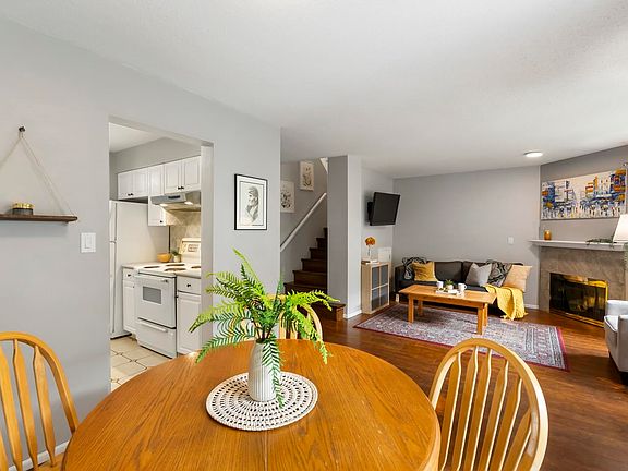 A charming 2-storey Creekside Village home awaits you! Family & pet friendly, spacious rooms, 2-level comfort & abundant storage. Main floor hosts a bright & practical Kitchen w/ breakfast nook. Living/Dining rooms are framed by a sunny bay window, plus a gas fireplace & discreet under-stair storage. Large 2pc Bath & Full Laundry rm complete the main. Second floor Primary fits a king-size bed with ease plus WIC & full Ensuite Bath. Two bedrooms across the hall are large, flooded w/ natural light and share 2nd full Bath. Backyard is private, fenced & grassy w/ large patio & raised garden beds! Parking 2 cars is convenient: single car garage & private driveway. Bear Creek Park across the street, Newton Elem. & Princess Margaret school catchments. Your family will LOVE living here!