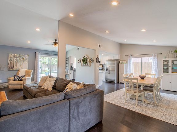 Beautiful upgraded modern 3bed 2bath home is a must see!!! This home has an open floor plan with canned lighting throughout living room, dining room and kitchen, granite countertops with backsplash and extra cabinet space for storage. Large master bedroom with double doors and large closet space. Beautiful landscaped backyard with new installed sod, extra cement, and a seating area with decomposed granite, dog run on the side, and storage shed. This backyard is meant for family gatherings or entertaining, you don't want to miss out. This home will not last long!!!