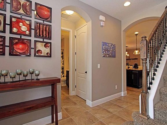 Back on the market! Buyer's financing fell through. Whether enjoying the magic of Disney fireworks from your master bedroom balcony, sunbathing in the private courtyard outside your great room, or preparing dinner in your magnificent gourmet kitchen, this luxurious townhouse offers Windermere living at its finest. Former Ashton Woods model home features almost $40,000 in builder upgrades, starting in the foyer with a beautiful wood and wrought iron stair rail. The kitchens 42 espresso cabinets with crown molding also sport under cabinet lighting, showcasing the Lapidus granite and Sugar Sand quartz counters. Stainless steel appliances include a fully vented microwave range hood and French door refrigerator. Perfect for entertaining, the kitchens oversized island with breakfast bar opens onto the great room, a combination living and dining room at the rear of the home. Step outside to the detached two-car garage and youll never be surprised by a sudden rain showera thoughtfully covered portion of the courtyard will keep you dry. The bedrooms are a rare three-way split: one downstairs, the master upstairs overlooking a pond and conservation area in front of the property, and the third upstairs at the rear of the home with a view of the community pool. Also upstairs is the laundry room and a useful loft. Three full baths including the spacious master ensuite with dual sinks, linen closet, and oil rubbed bronze shower enclosure. Too many other upgrades to list in this captivating, spotless townhome.