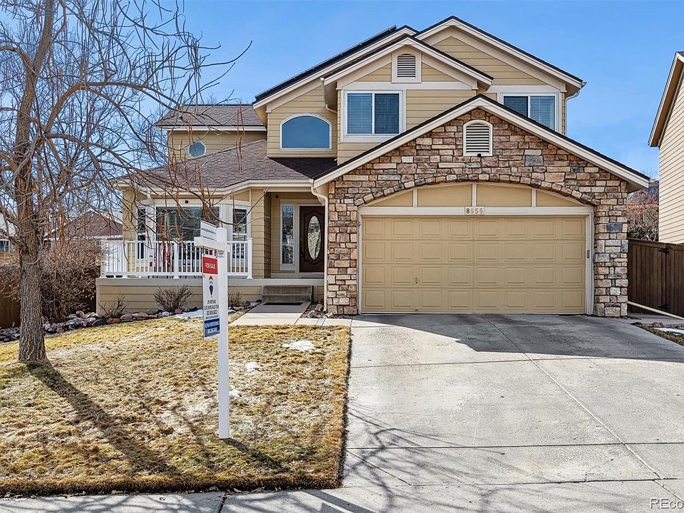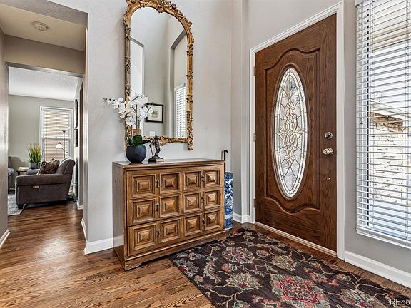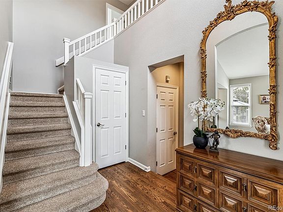 Nestled in a peaceful neighborhood, this single-family residence offers an abundance of natural light with large windows throughout, creating a bright and welcoming atmosphere. Notice the gorgeous hardwood floors that flow seamlessly through the main level. The open-concept living room and dining room provide the perfect space for entertaining or relaxing with family. The heart of the home is the beautifully updated kitchen, featuring sleek stainless steel appliances, a spacious granite island, and a cozy breakfast nook with bay windows that offer serene views of the surrounding area. Adjacent to the kitchen, the family room features a floor-to-ceiling stacked stone fireplace, creating a warm and welcoming ambiance. Upstairs, you’ll find 4 well-appointed bedrooms, including the expansive primary suite. The primary bedroom is large enough to accommodate a sitting area, and the bay windows provide a peaceful view to start and end your day. The beautifully remodeled primary bath is a true retreat, with elegant granite countertops, a freestanding soaking tub, a stunning tiled walk-in shower, and a generous walk-in closet. The fully finished basement is an incredible addition, offering a large flex space that can easily be tailored to fit your needs—whether that’s a home gym, media room, or office. Two additional bedrooms provide plenty of space for guests, teens, or a growing family, and the 3/4 bath adds ultimate convenience to this level. In the backyard you’ll find a huge open yard perfect for playing, gardening, or simply enjoying the outdoors. The large deck, covered by a stylish pergola, creates an ideal space for dining, relaxing, or entertaining family and friends. Plus, the storage shed in the backyard offers practical storage solutions for all your outdoor equipment. With so much to offer inside and out, this home truly has it all—space, style, and comfort in a prime Highlands Ranch location!