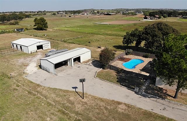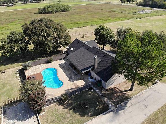 Brock ISD! Bring your horses! This 5.112 Acres offers a 6-stall barn with turnouts and tack area, electricity, fans and water, 10x10 wash rack, 20 x 12 loafing shed. This property is fenced and cross fenced. Includes a 50x20 shop-carport combo with electricity, electric gate, blacktop driveway and fruit trees. This lovely home is a 3 bedroom 2 bath with wood burning fireplace, split bedrooms with Jack and Jill bath. Master bath includes jetted tub, dual vanities, separate shower and walk-in closet. Kitchen offers granite counters, stainless steel appliances. Beautiful private in-ground pool. New features include whole property Ozone water system 2019, new well pump 2019.