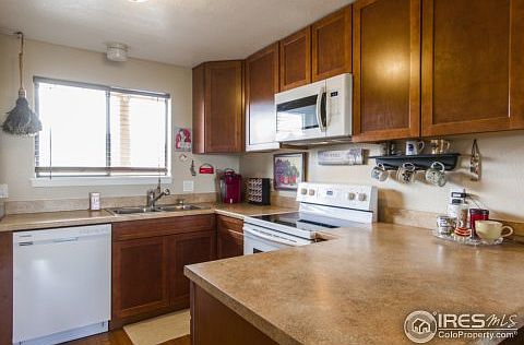 Charming ground floor condo backs to park-like grassy area and has peekaboo mountain views from kitchen. New Furnace, A/C, and Water heater in 2016. Updated in 2014 with new Samsung oven, microwave and dishwasher, new counter top, soft close cabinets, carpet and laminate floors. 3 year old Whirlpool Washer and dryer stays, along with refrigerator! Great walk in closet and additional closet in bedroom for extra storage. Exterior of complex is currently being updated.