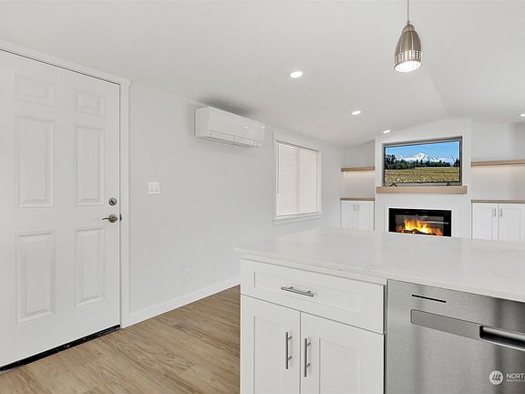 Completely remodeled, EVERYTHING IS BRAND NEW in this home. The attention to detail & distinctive finishes set this gorgeous home apart from the rest. Stunning white cabinets w/ quartz countertops, SS appliances and beautiful tile backsplash. Fully updated bathroom. Large covered deck to enjoy morning coffee with beautiful mountain view or just relax in the evening. Mini-split great for AC, great for hot summer days, metal roof for easy maintenance & lot a lot more. Fireplace for cozy winter nights. Fully fenced, sunny lot with greenbelt in the back for privacy. Lots of parking space, including Boat/RV. Land is included in the sale, there is no space rent & no HOA fee. Minutes to fishing, hiking, swimming & popular Mt. Baker ski area.