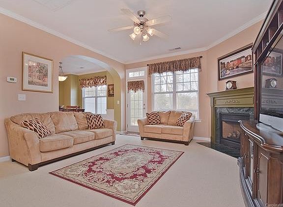 Fabulous town home living located in Cabarrus County side of Highland Creek! Cabarrus County taxes & schools. Literally MOVE-IN READY! Amazing open floor plan. Inviting family room with corner gas log FP. Back deck overlooks expansive golf course view. Dining room w/tiled floor adjacent to kitchen which features upgraded cabinets, granite counters, stainless steel appliances (including refrigerator) & breakfast bar. Upstairs, master bedroom features a tray ceiling and private balcony overlooking golf course. Spacious master bath boasts a separated jetted tub & shower and separate dual vanities with gentleman-height counters, walk-in master closet and private water closet. Roomy secondary bedrooms feature walk-in closets and ceiling fans. Convenient laundry room upstairs. Washer/dryer included. Highland Creek community offers an abundance of amenities and activities. Seller is offering a one-year home warranty from First American Home Buyers Protection at closing.