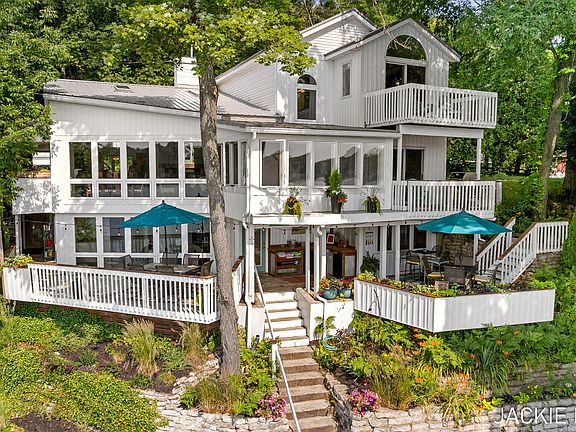 Welcome to this STUNNING Lake Home on Big Brower Lake with 70' of water frontage! Almost every room in the home has a ''lake view'' with views that are breathtaking. End your summer living in this beautiful 5 bedroom, 3 full bath home (each level has a full bath) that also offers, a TV den, a new bar/kitchenette in the lower level with a ''Main Door'' that separates the main level and the lower level for privacy; for guests it can't get better than that! There is a 3 season porch, off the main living area for sunrise views and morning coffee...with a side deck for grilling A lower level gathering room with the bar/kitchenette and once outside on the deck, there is an entertaining area with multiple deck seating. New Siding2023/New Metal Roof 2022. Across the road is your garage ...bonus room above garage (14x22 bonus room) possible office/workshop/hobby space adding 308 sq ft to property = 3,576 total sq footage. Garage is 2 deep stall 14x33. NEW HVAC Mechanicals installed 2-4 years ago and New Gutters were just installed June 2024. Big Brower Lake Association Annual Fee $100. Association has playground/picnic area/pickleball court/basketball court! Buyer's agent to verify all home and lot measurements. Security Camera on Premises.This is a Fabulous Home that is close to schools and downtown Rockford.