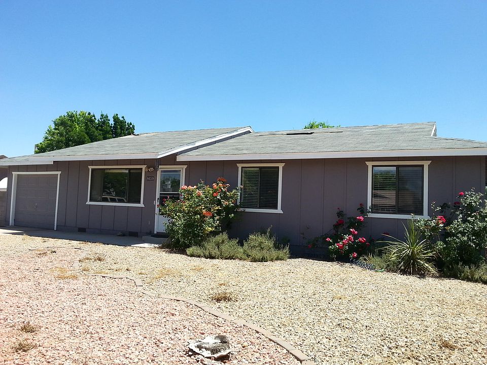Nice 3 bedroom, 2 full bath 1200 sq. ft. home on quiet street in Prescott Valley. Fenced back yard; single car garage. Hardwood floors in main living area with carpet in bedrooms. Non-smokers only. Well mannered pets allowed upon approval. Must pass tenant screening (fee). New roof since above photo was taken. Baseboard heating. Portable AC unit and ceiling fans. Possible earlier move in. Feel free to drive by but do not disturb tenants. Contact owner for more information or to apply.