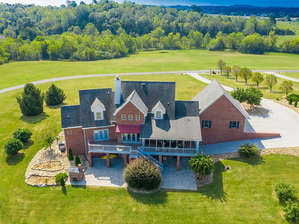 A beautiful,architect designed custom built home situated on 5 gorgeous acres bordering the Holston River.This home has been meticulously maintained by its original owners.Large master on main with huge walk-in closet and beautiful master bath.Amazing kitchen with tons of cabinet space,gas cook top,double convection oven,all open to dining & living room.Huge laundry room on main level with full size pantry.Gas/wood burning fireplace on main.Oversize 2 car garage on main.Upstairs offers 3 bedrooms,bonus room,and full bath.Basement has a wine cellar, mechanical room,work shop,1/2 bath, garage and back door out to paver patio where a custom built pizza oven resides!Then stroll down to the river where a concrete party pad exists to relax or entertain! Huge deck and covered porch off main level