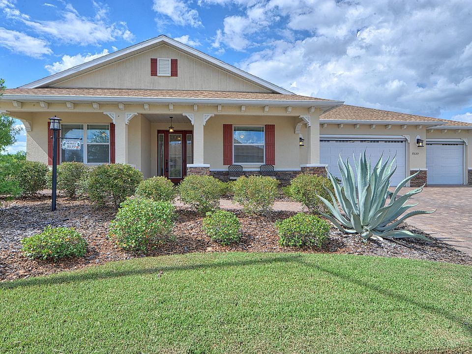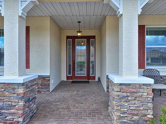 Lovely Argyll model in Candler Hills West Stonebridge Community, with 3 bedrooms, 3 baths, and a 3 car garage. Beautiful landscaping with an extended lanai and birdcage. Inside, there are gorgeous maple cabinets in kitchen and laundry room.Crown molding and surround sound in living room. Many more updates. Home is tiled and bedrooms carpeted. Master bedroom has a custom office with doors. The garage also has a workshop and is air-conditioned. No neighbors in the back giving you privacy. Located in Ocala's premier, gated, 55+ community, loaded with amenities, including golf cart access to two shopping centers.