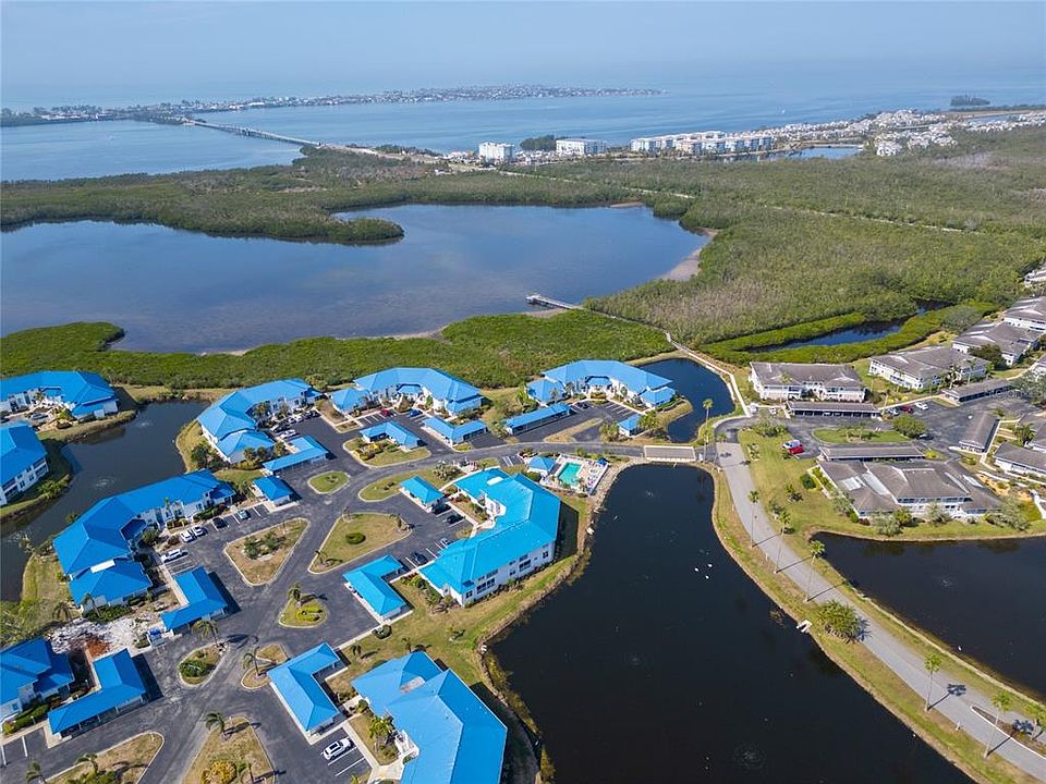 The perfect coastal getaway! Perico Bay Club is a gated-community that combines convenient location, amazing views and a maintenance-free lifestyle just 2.2 miles from the world-renowned sugar-sand beaches of Anna Maria Island! Wake up every morning to a beautiful water view and enjoy watching the famed white pelicans in the pond just below your second-floor unit. This “Kingfisher” floorplan features a calm, coastal themed décor with an updated kitchen featuring stainless steel appliances, two updated bathrooms, luxury plank flooring and volume ceilings in the main living areas plus a large tiled, screened-in lanai with expansive views. Shoreline Terraces II offers its own community pool and spa with convenient bathroom, plus fully funded reserves and a well-run association that maintains the building exterior, community areas, and all pool areas. Currently utilized as a Primary Residence, this unit is perfect for seasonal or year-round residence! The Perico Bay Clubhouse offers many opportunities to participate in social activities as well as a fitness center, lending library, several gathering spaces (both indoors and out), tennis and pickle ball courts, shuffleboard, kayak launch and storage and a second heated junior-Olympic lap pool. The community boardwalk is perfect for taking in all the nature in the area or you can bike or hike in nearby Robinson Preserve. Schedule your private showing today to make this slice of paradise your own!