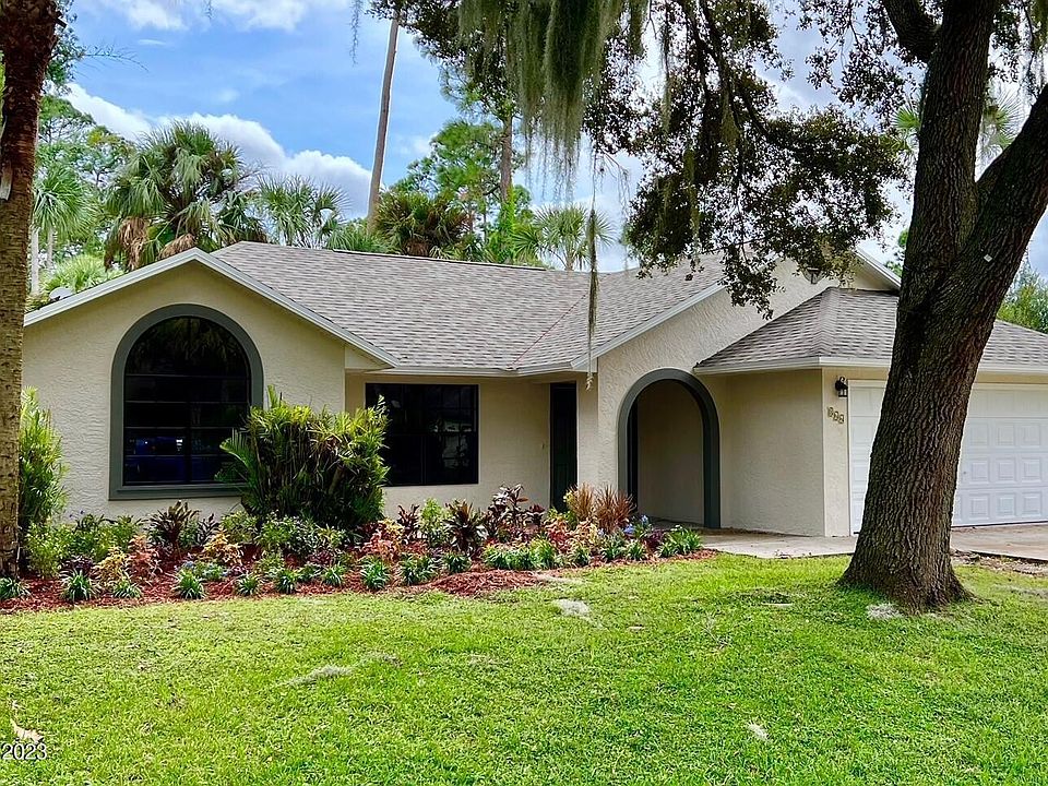 3/2 Single Family. Beautifully updated 3 bedroom, 2 bath home in desirable Palm Bay! New kitchen featuring white, shaker cabinets, quartz counters and stainless steel appliances. Kitchen overlooks the spacious great room that features a cozy fireplace. Sky lights flood the room with natural light. Spacious master suite with roomy, walk-in closet and sliders out to the screened patio. Beautiful, arched window anchors the master bath which features a huge soaking tub and double vanity. Contemporary tile and plush, new carpeting throughout. New roof in 2023 and new a/c in 2023! Fantastic location in a wonderful neighborhood. Close to shopping, entertainment and great schools. This beautiful home is a must-see!