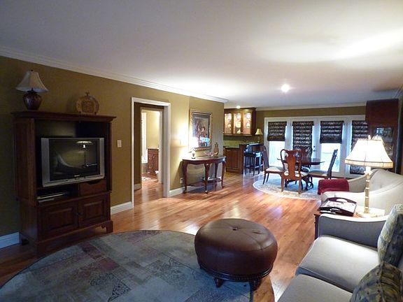 This remodeled end unit features hardwood floors throughout, crown molding & recessed lighting. The kitchen has been opened up & boasts granite counter-tops, stainless steel appliances, wine refrigerator, tiled back splash, custom cabinets, 2 seat bar & formal dining area. Large deck for entertaining & has views of #18 on the Cobb Course. This unit is furnished & includes utilities.