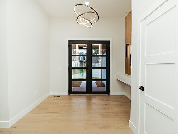 Spectacular walk-out basement home in Irish Hills Estates with 3,412 SF of beautiful living space, including 4 bedrooms, 3.5 baths, multiple living areas & a 3-car garage. The stylish cream-colored all-brick exterior w/ dark accents & welcoming front porch w/double entry doors set the tone for this exceptional property. The entry impresses with a high ceiling, contemporary light fixture & stunning acoustic wood-slat wall. Durable hard-surface flooring provides a cohesive, elegant look. The open-concept living area offers a sleek black, floor-to-ceiling modern fireplace, creating a striking focal point next to the spectacular kitchen boasting a large center island, quartz countertops, contemporary pendant lighting & black stainless appliances. With abundant counter space, cabinets, & convenient prep pantry, this space is perfect for daily living & entertaining. The eating area opens to a covered deck with maintenance-free composite flooring. A flex space offers versatility as a formal dining room or den. This room features floating built-in cabinetry & high-quality triple-paned European windows imported from Germany, used throughout the home's main level. The primary suite is a luxurious sanctuary, w/ soaking tub, spacious tile shower, dual sink vanity & large walk-in closet w/ custom wood shelving. Two additional main-floor bedrooms also feature large closets with custom shelving, adding functionality. The lower level provides a family room and a fourth bedroom, which could also serve as an office or exercise room. This area includes a European cabinetry/closet system for more storage. Additional features of this home include a water softener, UV light & reverse osmosis water filtration system, and a lawn irrigation system, ensuring convenience and comfort. This well-designed home is in a lovely neighborhood with swimming pool & an HOA that hosts community events. This home offers a perfect combination of modern design, thoughtful amenities, & community atmosphere.