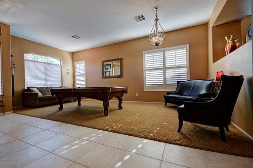 Immaculate Home in the Heart of Gilbert. Entertain In Style with the Refreshing Pebble Pool, Large Concrete Covered Patio and a Large Backyard. 4bd/2ba, 3 Car Garage, Custom Shutters, Super Clean Tile Floor Throughout, Roomy Kitchen Island, Maplewood Cabinetry With Stylish Hardware, Black Appliances, Elegant Ceiling Fans, Recess Lighting, Media Wall, Natural Colors, and Lots of Natural Light. Gas Fire Place for Cozy Winter Nights, Plush Neutral Carpet.