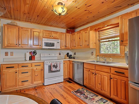 If you are trying to escape the hustle and bustle of life and privacy is a top priority, this 2BR 2BA mountain home might be your perfect fit! Located in a gated community with only 3 other homes, this cabin sits on a little over 3 acres of beautiful, gentle rolling, open land that looks as peaceful as it sounds. Surrounded by woods with an outbuilding/workshop and creek on property. Walk into an open floor plan that combines the living room with rock fireplace that extends with the ceilings, the dining area, and large kitchen area. Spacious master on main with walk in closet and newly renovated master BA with double vanity and large shower. Pine floors and ceilings throughout for that cozy cabin feeling. Large room upstairs with walk in closet and BA along with a loft area overlooking living room great for office space, hobby room, or play area. Wrap around deck with plenty of room for seating goes hand-in-hand with a nice cup of coffee to overlook the simplicity before you.