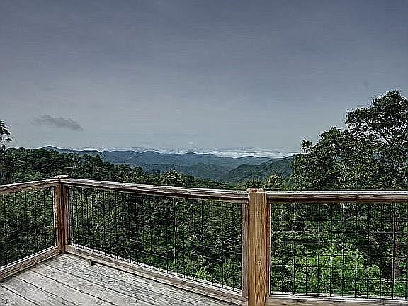 Stunning home located at the top of Alarka Highlands. This 2 bedroom ensuite with a half bath sits on over 3 acres. FULLY FURNISHED! Truly breathtaking views that have multi-layers of mountains. Open living/dining and kitchen. A large stone fireplace that goes to the top of the cathedral ceiling in the living room with a pellet stove that's never been used. Two sitting benches built-in on both sides of the fireplace to sit and enjoy the stunning views. Gorgeous kitchen with eat-at bar. Leathered granite. Cooper sink. Nice walk in pantry. The Master bedroom has french doors off of the living room. Large bedroom with tongue n groove tray ceiling. Sliding doors off of master to the deck. Large walk-in closet. Nice size master bath with bowl sinks and leathered granite and a great size tile shower. Luxury vinyl floors throughout. Another oversized suite bedroom also has french doors off of the living room and sliding doors onto the deck. Nice walk-in closet and full bath. Decks recently stained. Half bath off of the living area. Laundry room with a door that leads to 2 1/2 car garage. Sliding door that leads to a fenced-in yard. Whole house dehumidifier. Would be a great rental home!