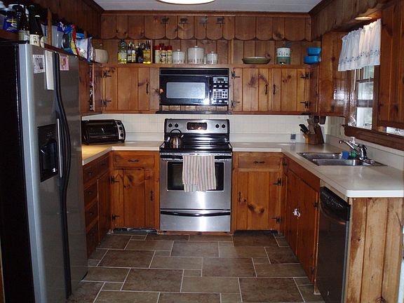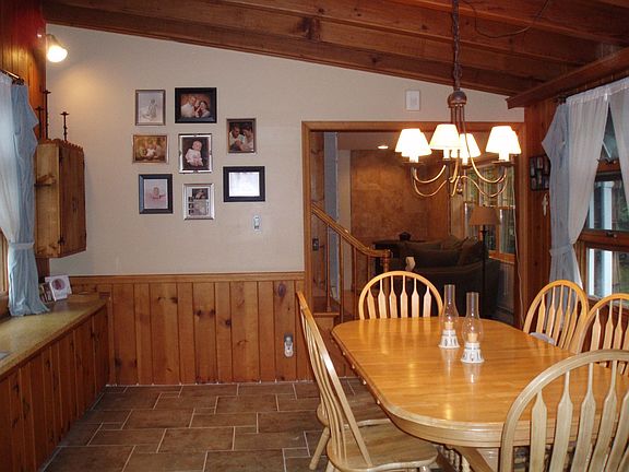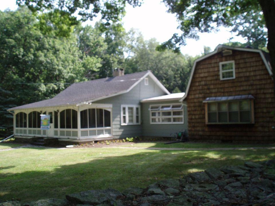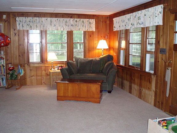 Lots of natural light, large rooms, endless rock walls border property, being sold as-is. one fireplace, set up for wood or pelet stove.