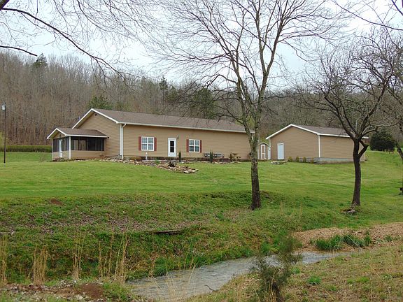 GRAND SPREAD is how to describe this magnificent custom built 2640 SF 3 bedroom, 3 bath, Hardy Plank home sitting on the bank of a creek with waterfalls, table rock & bridge over creek. Dead End Rd. Sparling 53.3+/- acres combination of lush green fields and hardwoods. Great room is 62'x18'. 12' ceilings. Screened covered deck full concrete back porch. 2 bay garage. 2 additional building sites with septics, power poles. See pictures to see all extraordinary features. ONE OF A KIND!! COME SEE!