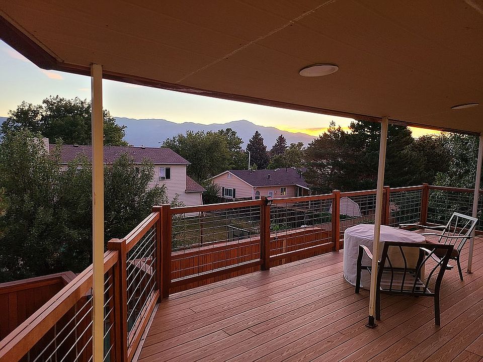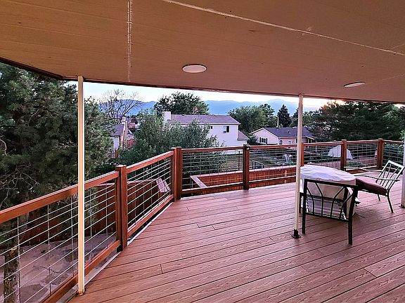 *YOU WONT FIND VIEWS LIKE THIS FOR THE PRICE AND AREA!* Beautiful home up for sale! House has been kept in great condition with a brand new roof! Gas fire pit on the beautiful deck which overlooks the majestic Rocky Mountains and Pikes Peak! You'll absolutely love entertaining on the composite deck with your family & friends. Newer fence with brand new staining completed recently. Master bedroom was converted to a large suite. Kitchen has granite countertops, beautiful hardwood floor and some stainless steel appliances. Large tiered backyard with very little to no maintenance throughout as it is hardscaped for convenience. The master bedroom was converted from four bedroom to three but can be converted back if desired. Well kept and ready to sell!