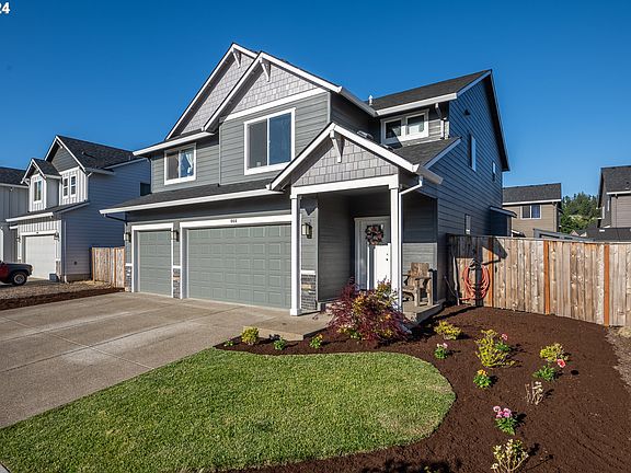 This newer construction boasts an efficient open floor plan with laminate floors and wood-wrapped windows on the main level. The living room features a cozy gas fireplace, while the gourmet kitchen impresses with solid quartz countertops, stainless steel appliances, a gas range, and craftsman-style cabinets with crown molding. This home is equipped with energy-efficient amenities such as solar panels, gas furnace and double-pane windows. It also features durable and attractive HardiePlank® Full Lap siding. The front yard is beautifully landscaped and includes an underground sprinkler system. Brownsville offers a quaint, historic downtown and a strong sense of community. Nestled in the picturesque Willamette Valley, it provides easy access to outdoor activities,including hiking, fishing, and cycling. Brownsville's rich history and small-town charm make it a wonderful place to call home.