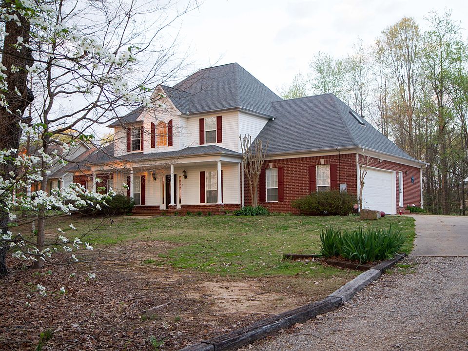 Country living at its finest. This is an updated and well-maintained 3,000 sq. ft home on 1.3 acres set back from a quiet cul-de-sac in the desirable Lancaster Place neighborhood. This four bedroom, 2.5 bath home is located just across the county line into Tipton County to enjoy the lower taxes and great schools. Just eighteen minutes to either gate of NSA Mid-South and thirty minutes to shopping and dining at Wolfchase. It has an open floor plan featuring tile and wood throughout the main living area downstairs. Amenities include gas fireplace, ceiling fans throughout, a whole house vacuum, built-in bookcases, and a brick accent wall. A large master suite with vaulted ceilings, a walk-in closet, and a huge master bathroom completes the downstairs. The master bath has separate his and her's vanities, a large jetted tub, 3'x5' shower, and separate toilet room. Upstairs has two 12' x 14' bedrooms and a large 12' x 24' bedroom with two closets. Additionally, there is a large bonus room and study with a nook ideal for a desk. The house includes a 2 car attached garage and an additional detached 1.5 car garage/workshop. The exterior landscaping includes dogwoods, azaleas, crape myrtles, a large magnolia, a weeping willow, roses, and numerous other perennials. The front porch completes the country feel with a quiet porch swing to enjoy nature. Finally, there is a stone patio behind the house to barbeque and enjoy the back yard, complete with a freestanding stone fireplace and chimney.
