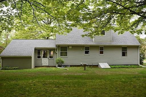 Well maintained cape style set on a beautiful dry and level 1.89 acre lot. Zoned Business. Updated roof, hot water, and second floor bath. Low maintenance vinyl siding with a brick front. Inviting interior layout features a large kitchen with a dining area that faces the back yard, and a convenient built in ironing board! Formal dining room with a built in cabinet. Roomy living room with a working fireplace, and a bay window. First floor bedroom and full bath. Upstairs has two well appointed bedrooms and an updated full bath. Full basement with interior access and a bulkhead to the back yard. Enclosed breezeway is between the kitchen entrance and the one car garage and also accesses the back yard. This lot is one of the best that you will see in Raynham ... almost 2 acres, dry, mature trees and shrubs, gardens, etc. A perfect place to call home! Open house on Sunday, May 20th from 1 to 3.
