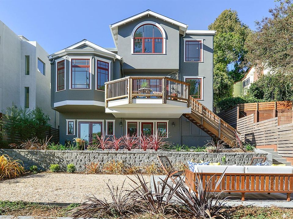 Built in 2016, this new custom home offers luxury, style, custom features all in one package. The immaculate gourmet kitchen displays an elegant aesthetic and is any chef's or designer's dream, equipped with modern stainless steel appliances, stone counters, and a breakfast bar. Each bathroom is masterfully designed with tile details and a modern, sleek appeal. The spacious living room has decorative ceiling moldings, hardwood floors, and stunning french doors that open to the balcony with gorgeous views. Custom deck for easy maintenance. Seamless flow between outdoor and indoor spaces provides ample opportunity to enjoy sunny Berkeley weather. Additional features include the accessory suite with a kitchenette.